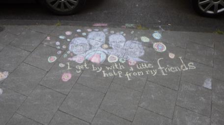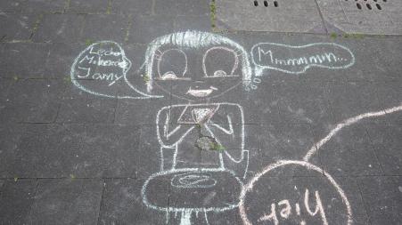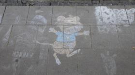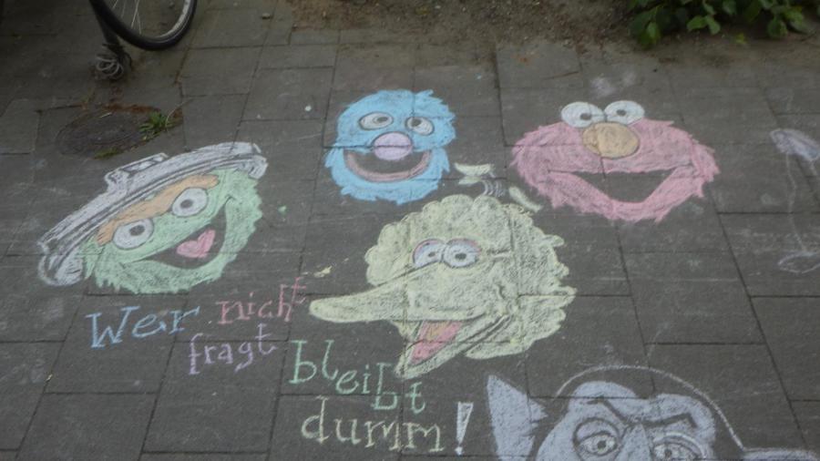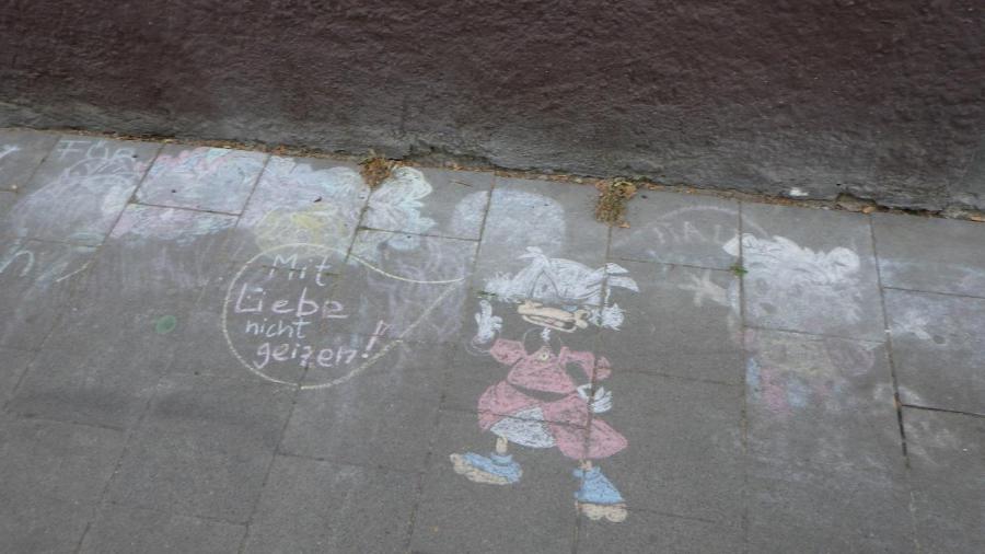 L'an passo haun gruppas dad iffaunts e creschieus pittüro diversas pittüras sülla salascheda dals marchapeis illa via, inua ch'eau stun daspö pü cu trenta ans: la Lindenstraße i'l quartier Düsseldorf-Flingern Nord. Quists bels exaimpels da Street Art sun uossa svanieus, ma eau d'he gieu l'occasiun da'ls pudair documenter cun mieu apparat da fotografer.