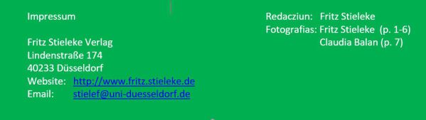Il salüd es üna giazetta per lecturas e lectuors chi vöglian ler qualchosa simpel, bel e dalettaivel davart Düsseldorf per puter. La giazetta es scritta per puter, perque cha quista lingua m'accumpagna bod mincha di illa cited inua ch'eau viv. La giazetta am permetta uschè da'm mouver in quista lingua e da'm exprimer per ella. Il salüd es eir üna spüerta a tuots chi s'interesseschan per Düsseldorf. Düsseldorf nun es New York, London, Paris u Berlin, ma Düsseldorf ho üna richa spüerta culturela. Mia intenziun principela nun es dad informer da quista spüerta. Ma Il salüd daro eir infurmaziuns davart evenimaints culturels importants in nossa cited, per exaimpel davart il Di giapunais. Mia prüma intenziun es da scriver davart impreschiuns fich persunelas, chi pudessan interesser forsa eir ad otras persunas. Il salüd es üna collecziun da fotografias e da texts cuorts lotier. Mincha fotografia es la vart davaunt dad üna cartulina, e mincha text es sia vart davous. La giazetta voul esser ün invid a tuots chi s'allegran da quists salüds. Els vegnan da la cited da naschentscha da Heinrich Heine.